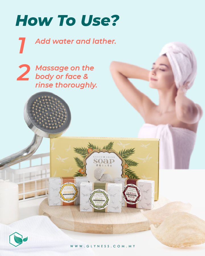 Kaico SHINE is a mini glycopeptide (antibiotic) extracted from Birdnest with our own methods. It is easily absorbed by the skin to increase skin cell multiplication, skin matrix production and reducing the activity of the MMP-1 enzyme that destroys collagen. This premium soap is best used for increasing the collagen and elastin production to maintain the youthfulness of skin and slow skin aging. [Reference : 1-3]